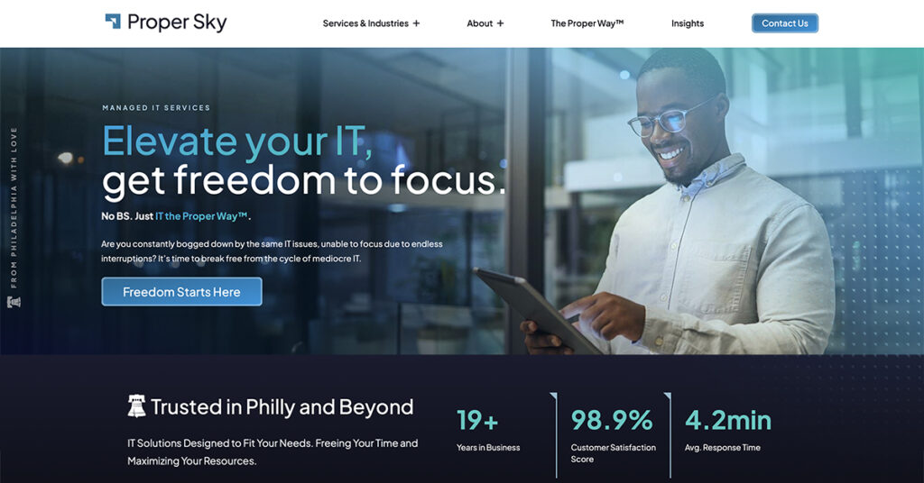 By delivering thoughtful, effective IT solutions, Proper Sky helps clients shift their focus away from daily technical issues and toward what really matters, which is growing and leading their business with confidence.
